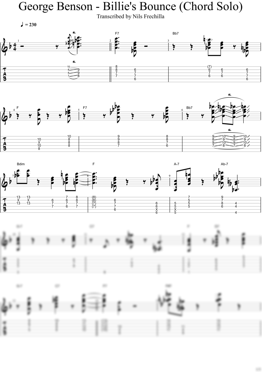 Here is my transcription of George Benson chord solo on Billie's Bounce from Giblet Gravy.